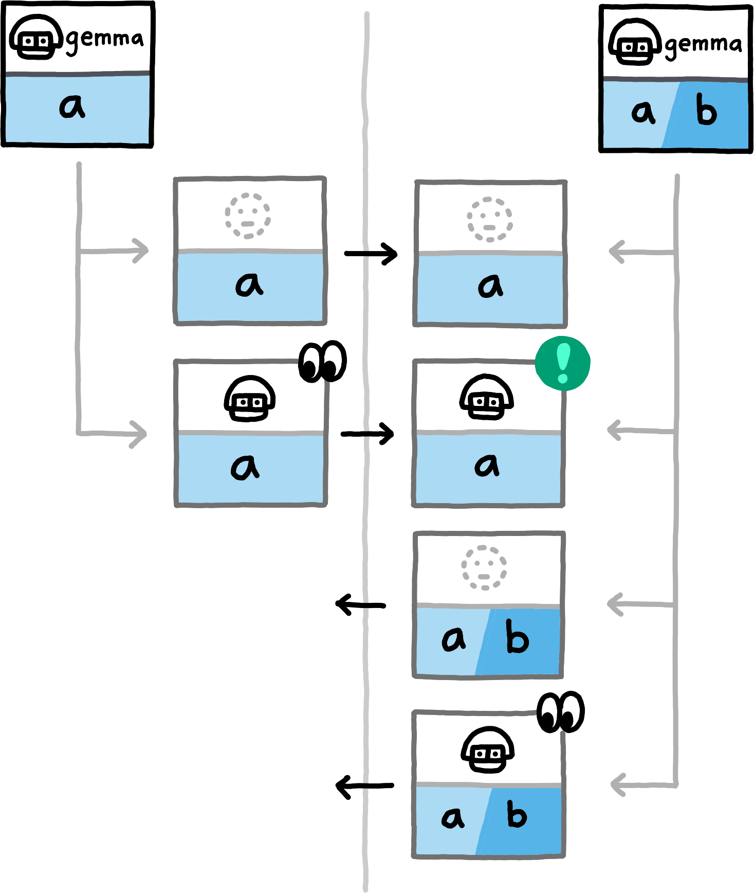 First, suppose that Alfie creates an Entry at Path gemma_stinks, and gives a read capability for this Path to Betty. Later, Betty connects to Gemma's machine for syncing, and asks for gemma_stinks in Alfie’s subspace. In sending her read capability, she hands a signed proof to Gemma that Alfie thinks1,21Gemma does not, in fact, stink.2Also, Alfie is really very nice and would never say such a thing outside of thought experiments for demonstrating the dangers of leaking Paths. she stinks. Not good.